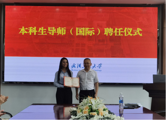与其他班级不同的是,除了学院教授担任本科生班主任外,学院还为班级配备了“洋”老师担任本科生(国际)导师。学院经理何东升为摩洛哥国立拉巴特高等矿业学校(Ecole Nationale Supérieure des Mines de Rabat)拉巴特矿业学院的教授AARAB IMANE 颁发了本科生(国际)导师聘书。